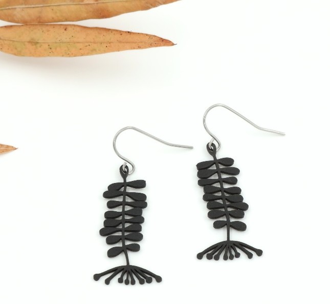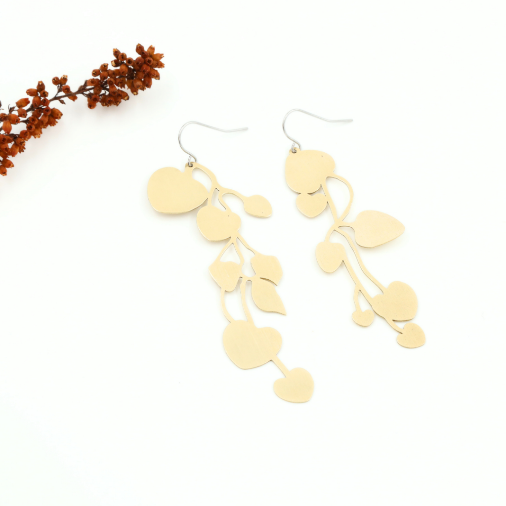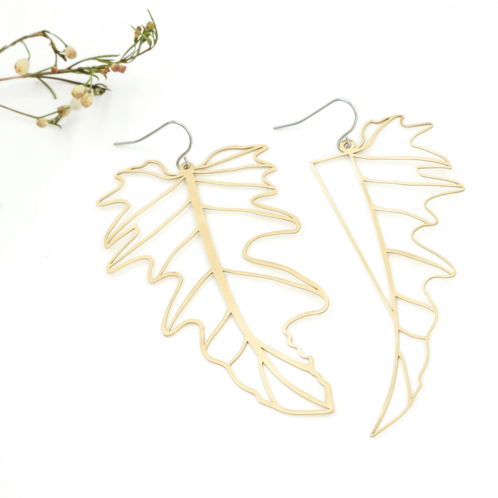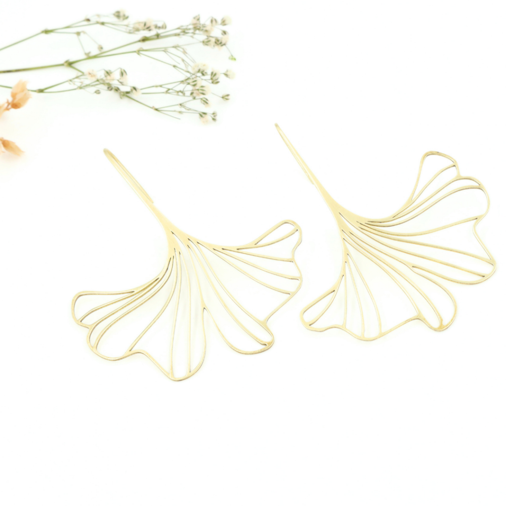 De oorbellen zijn 4 cm x 5 cm groot vanaf het haakje en verkrijgbaar in het zwart, zilver en goud/brons.
