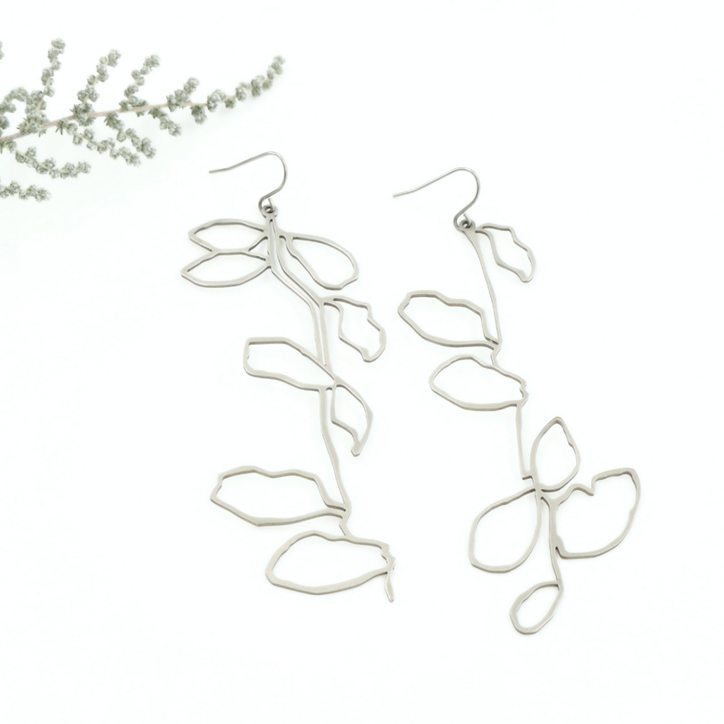 De oorbellen zijn 5 cm lang vanaf het haakje en verschillend van vorm. Ze zijn verkrijgbaar in de kleuren zwart, zilver en goud/brons.